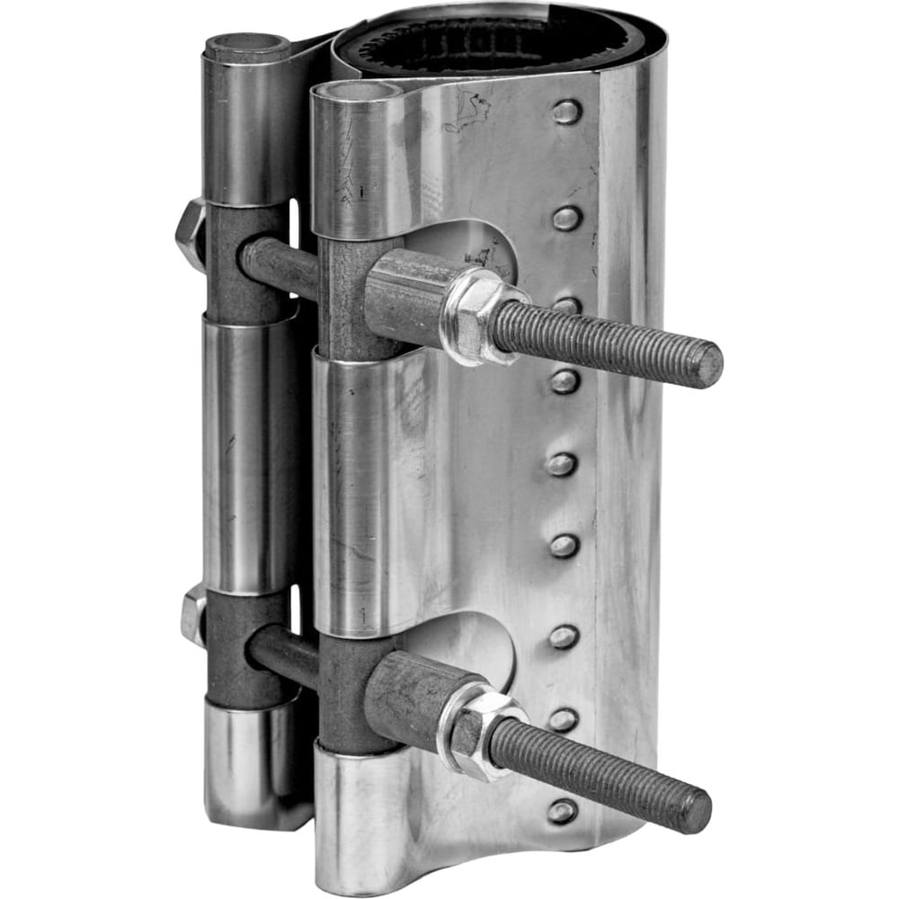 Хомут ремонтный, муфта свёртная, муфта ремонтная, хомут для ремонта труб - применяется для ликвидации течей в трубопроводах, транспортирующих различные жидкости, включая питьевую воду, а также для соединения стыков труб. Свертная муфта обеспечивает устранение течей на трубопроводах в случаях: появления поперечных трещин на чугунных трубах с осевым отклонением до 2°, образования крупных свищей на стальных и чугунных трубах. Изделие обеспечивает возможность соединений гладких концов стальных, чугунных и полиэтиленовых труб одинакового диаметра.Правила использования1. Длина муфты должна быть минимально на 145 мм больше длины трещины на трубе. Для труб из полиэтилена минимальная длина на 50% больше.2. Длина муфты должна быть как минимум в три раза длиннее, чем ремонтируемый дефект.3. При соединении гладких концов труб одинакового диаметра или задвижек и полиэтиленовых труб, расстояние между соединяемыми концами не должно превышать 5мм.4. Максимально допустимое отклонение осей трубопроводов составляет 2°. Максимальное отклонение по соосности не должно превышать 3мм.Обжимной диапазон (наружный диаметр трубы): от 44 мм до 1000 мм.Изготавливаемые длины муфт: 150мм, 200мм, 250 мм, 300мм, 330мм, 400мм.Стандартное рабочее давление: при ДУ муфты от 44-150мм – 16bar, от 175-500мм – 10bar, >500 – 6bar.Диапазон рабочей температуры: резинаNBRот -20 С° до +80 С°, резинаEPDMот -20 С°, до +150 С°