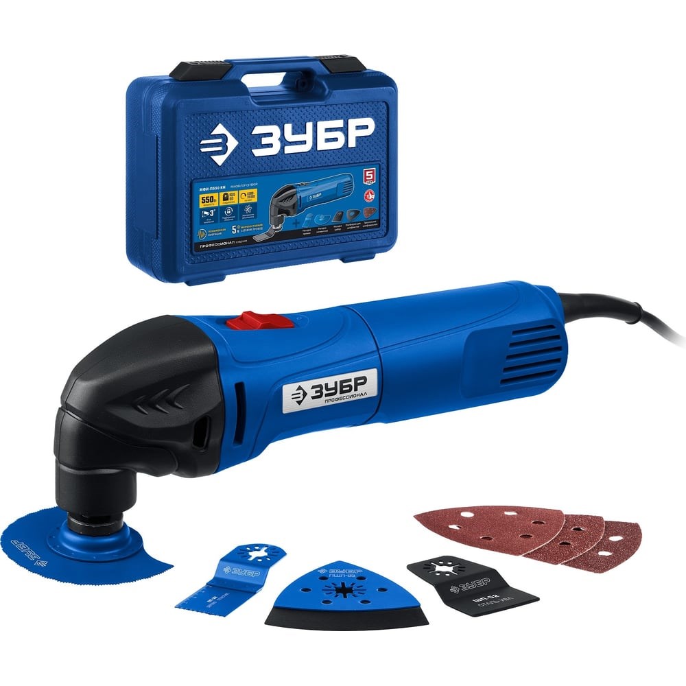Реноватор с набором насадок 550 вт, кейс ЗУБР Профессионал МФИ-П550 КН - универсальное устройство для специфических работ - выпиливание внутренних отверстий, пиление в труднодоступных местах, тонкое шлифование малогабаритных деталей. Большой угол колебаний 3 градуса в сочетании с широким спектром регулировки частоты обеспечивают эффективную работу с любым материалом. Поддержание частоты увеличивает производительность изделия. Применяется для резки, пилки, шлифовки заготовок из дерева, металла, керамики, пластика.