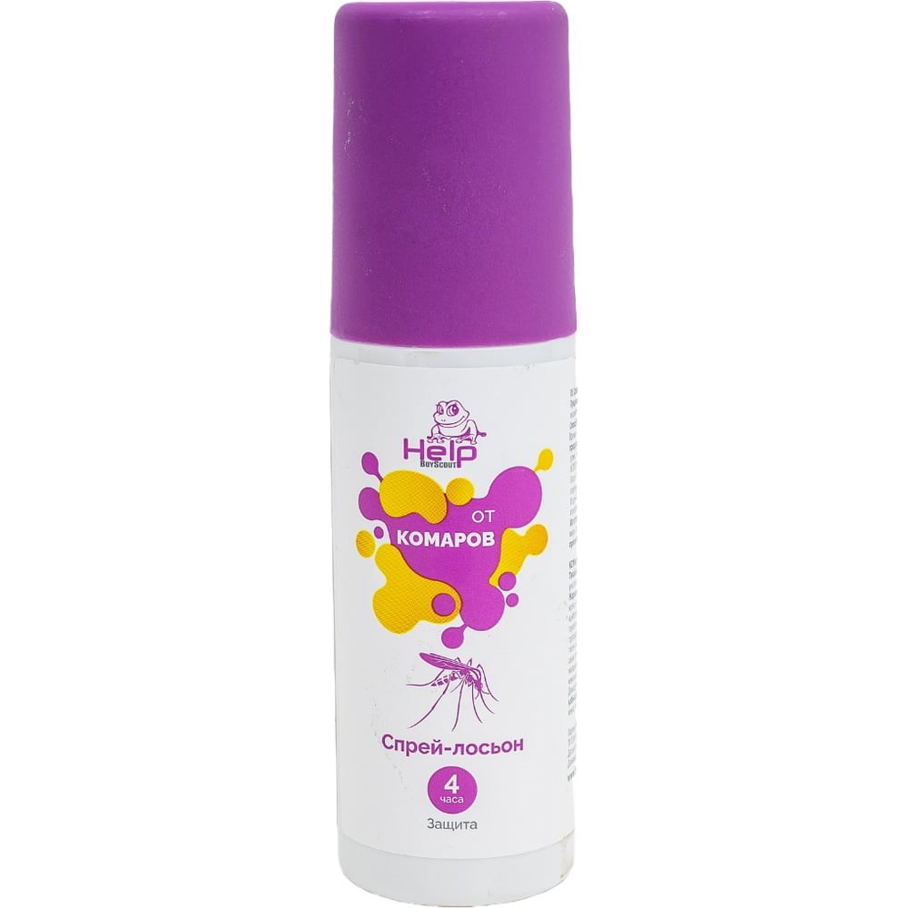 Репеллентный спрей-лосьон от комаров HELP до 4 часов защиты, 100 мл 80510 подходит для защиты от укусов кровососущих насекомых (комаров, мокрецов, москитов) при нанесении на открытые части тела. Спрей-лосьон от комаров нанести тонким слоем без втирания на открытые части тела. Время защитного действия от насекомых, до 4 часов. При необходимости обработку повторить. Использовать не более 3 раз в сутки!