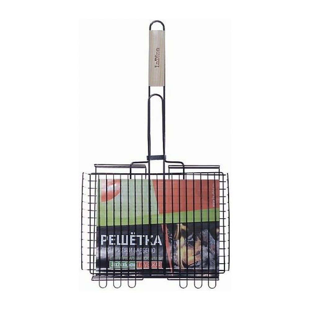 Решетка для гриля и барбекю Ladina 31х24х5.5 см 40009 предназначена для приготовления продуктов на открытом огне, жарки больших порций мяса или иных продуктов. Надежность. Изготовлена из стали с антипригарным покрытием, что обеспечивает защиту от образования коррозии и длительный срок службы Удобная ручка из древесины предохраняет от ожогов. Решетка легко моется и не занимает много места при хранении.