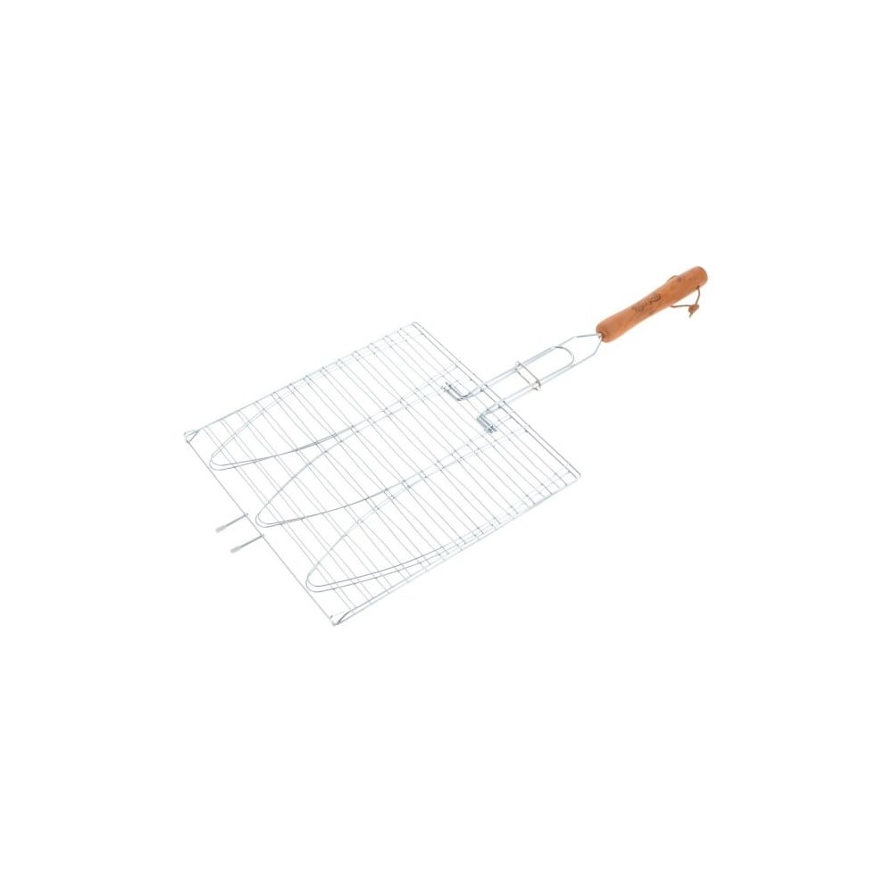 Решетка-гриль для рыбы ROYALGRILL 3 секции, 28х28см 80-019 незаменима на рыбалке или пикнике. Специальная форма обеспечивает удобство укладки рыбы для приготовления на углях. Защиту от ожогов обуславливает ручка из дерева.