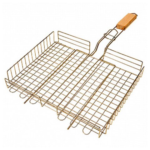 Решетка-гриль глубокая универсальная с рабочей поверхностью 320х260 мм — отличное решение для приготовления мяса, грибов, овощей и иных блюд на открытом огне. Глубина решётки позволяет удобно размещать и надёжно фиксировать крупные куски мяса, рыбу или овощи. Прутики из прочной стали выдерживают высокие температуры и обеспечивают долгий срок службы. Никелированное покрытие защищает от коррозии, устойчиво к огню и безопасно для здоровья. Конструкция плотно закрывается и надёжно удерживает продукты при готовке. Деревянная рукоятка не нагревается, удобно ложится в руку и защищает от ожогов.