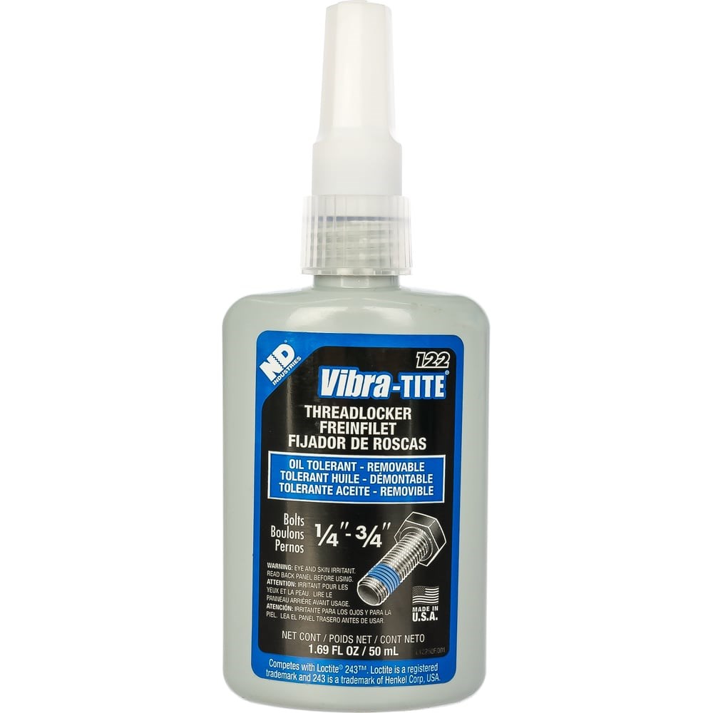 Резьбового фиксатора Vibra-Tite 122 обеспечивает фиксацию даже замасленных металлических делалей. Он успешно применяется при работе с пассивными поверхностями, быстро застывает, устойчив к растворителям и перепадам температуры.