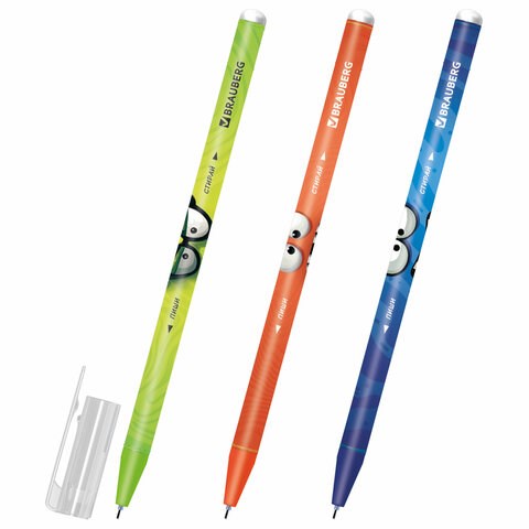Ручка стираемая гелевая, кросс-серия "МОНСТРИКИ", BRAUBERG, СИНЯЯ, корпус ассорти, игольчатый наконечник 0,5 мм, линия 0,35 мм, 144484