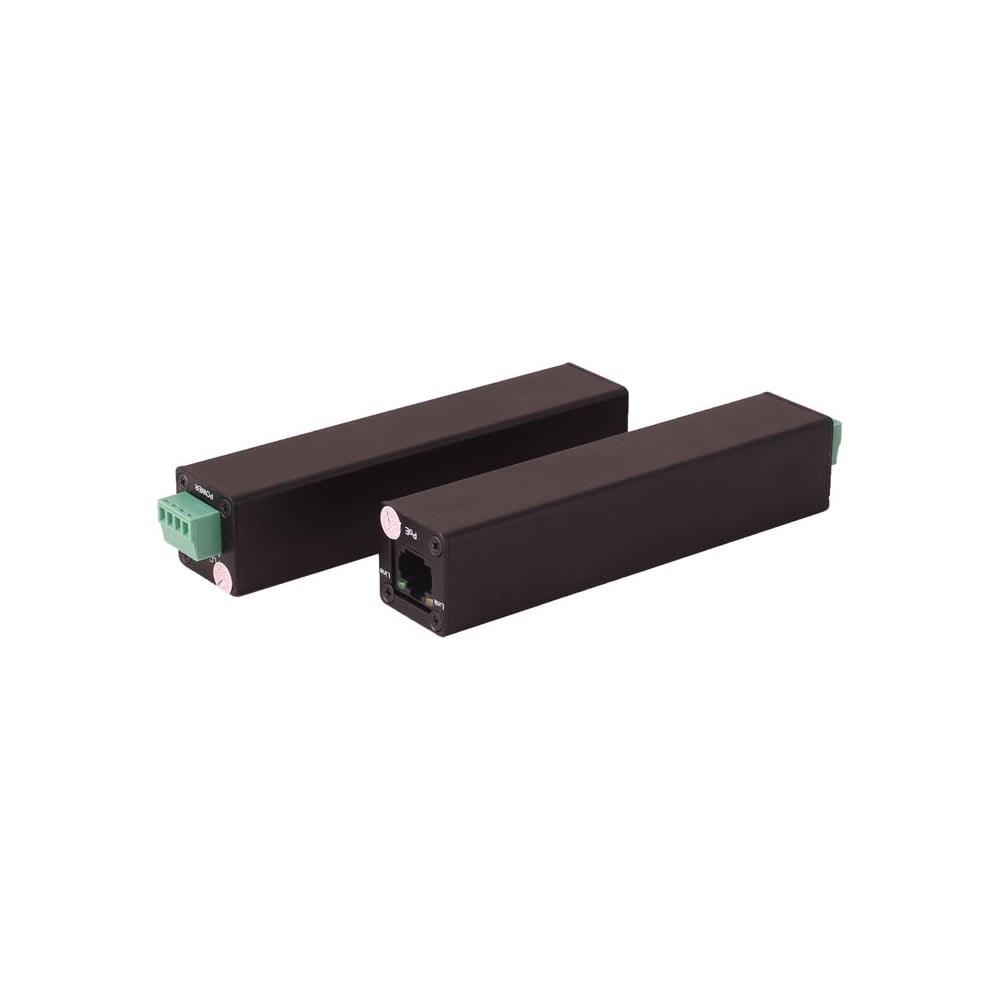 Удлинитель PoE (VDSL) до 500м (Комплект передатчик + приемник) по коаксиальному кабелю RG59 (RG6), телефонному, силовому кабелю. Расстояние передачи данных - 600м, Скорость передачи - 100 мбит/c. Мощность PoE на расстоянии 300м - 27Вт, На расстоянии 500м - 17Вт. Поддержка стандартов IEEE 802.3af/at. Автоматическое определение PoE устройств. Порты передатчика: вх.- 1 x RJ45 (10/100 Base-T), 2 x клм. питание (12-57VDC) , вых. - 2 x клм. (VDSL) , Порты приемника: вх. - 2 x клм. (VDSL), 2 x клм. питание (12VDC) вых. - 1 x RJ45 (10/100 Base-T + PoE). Напряжение питания передатчика - DC12-57V, приемника - DC12V. Рекомендуемое напряжение питания при передаче PoE - DC55V. Блок питания в комплект не входит.