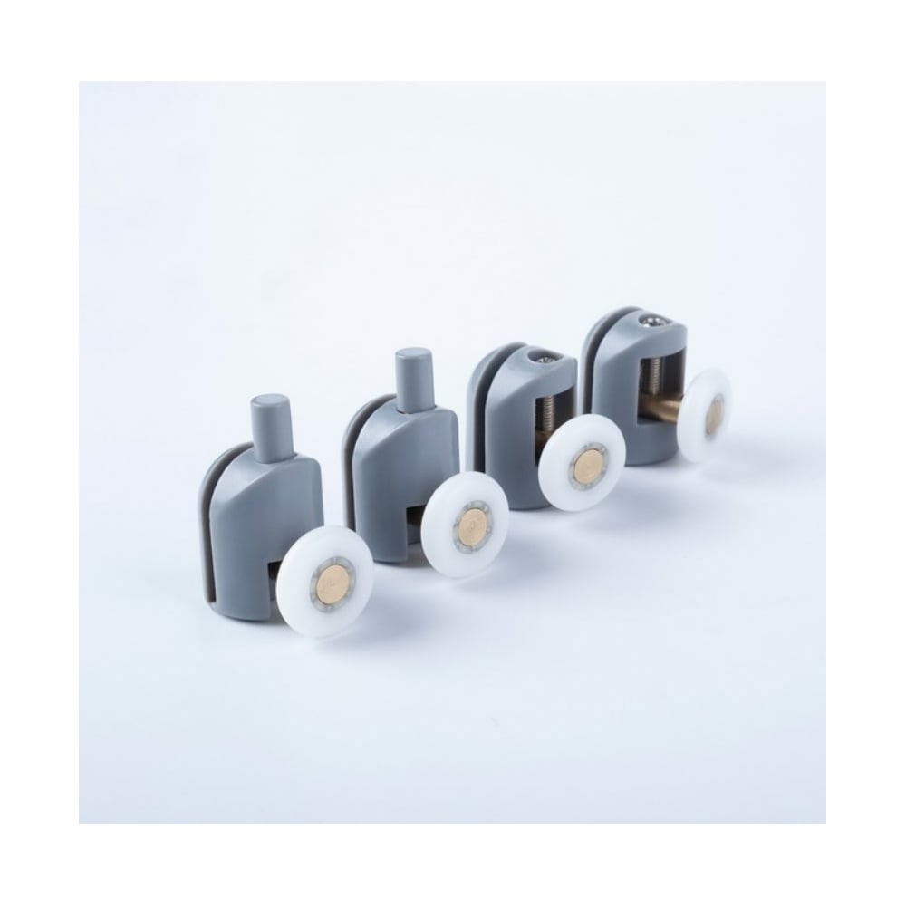 Ролики IDDIS 2 верхних, 2 нижних, одинарные, D=23 мм, серый, стекло 5-6 мм 966S23GR6DZ для раздвижных дверей душевой кабины или ограждения. Ролики одинарные и снабжены подшипниками для более мягкого хода. Это обеспечивает плавное и тихое движение дверок при открытии и закрытии – для комфортного ежедневного использования. Легко устанавливаются: верхние при помощи отвертки, нижние фиксируются кнопкой. И зготовлены из прочного ABS-пластика и надежной латуни, что гарантирует долгий срок службы и защиту от коррозии, влажности и скачков температур.