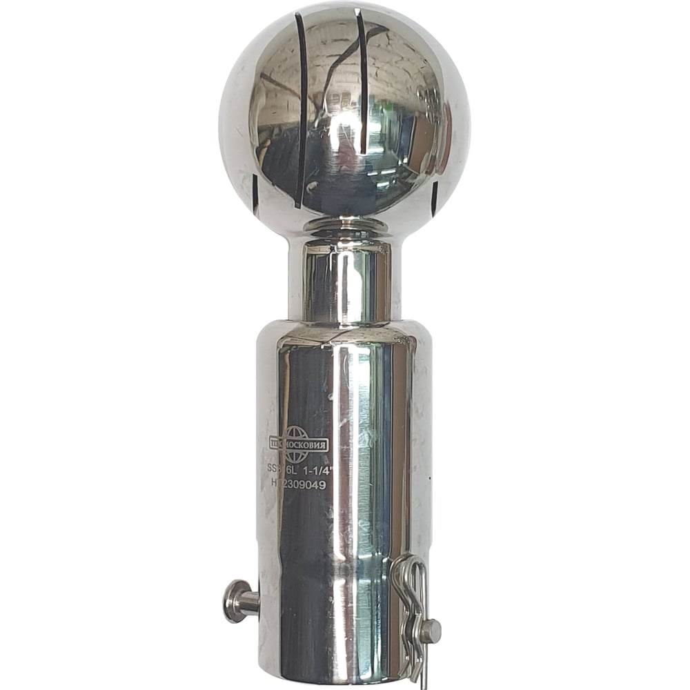Ротационная вращающаяся щелевая моющая головка ТПК «Московия» ГМШ- 1-1/4"-316L применяется в мойке баков, резервуаров и ёмкостей. Моющая головка данного типа для присоединения имеет шплинт. Рабочее давление 2-3 бар. Она изготовлена из нержавеющей стали AISI 316L. Радиус очистки 360 градусов. Максимальная температура среды 140° C.D шара - 53,0 мм; L - 145,0 мм;øDN - 31,80 ммРадиус распыления - 1,75 мРадиус очистки - 1,25 мРасход - 9,0 м³/ч