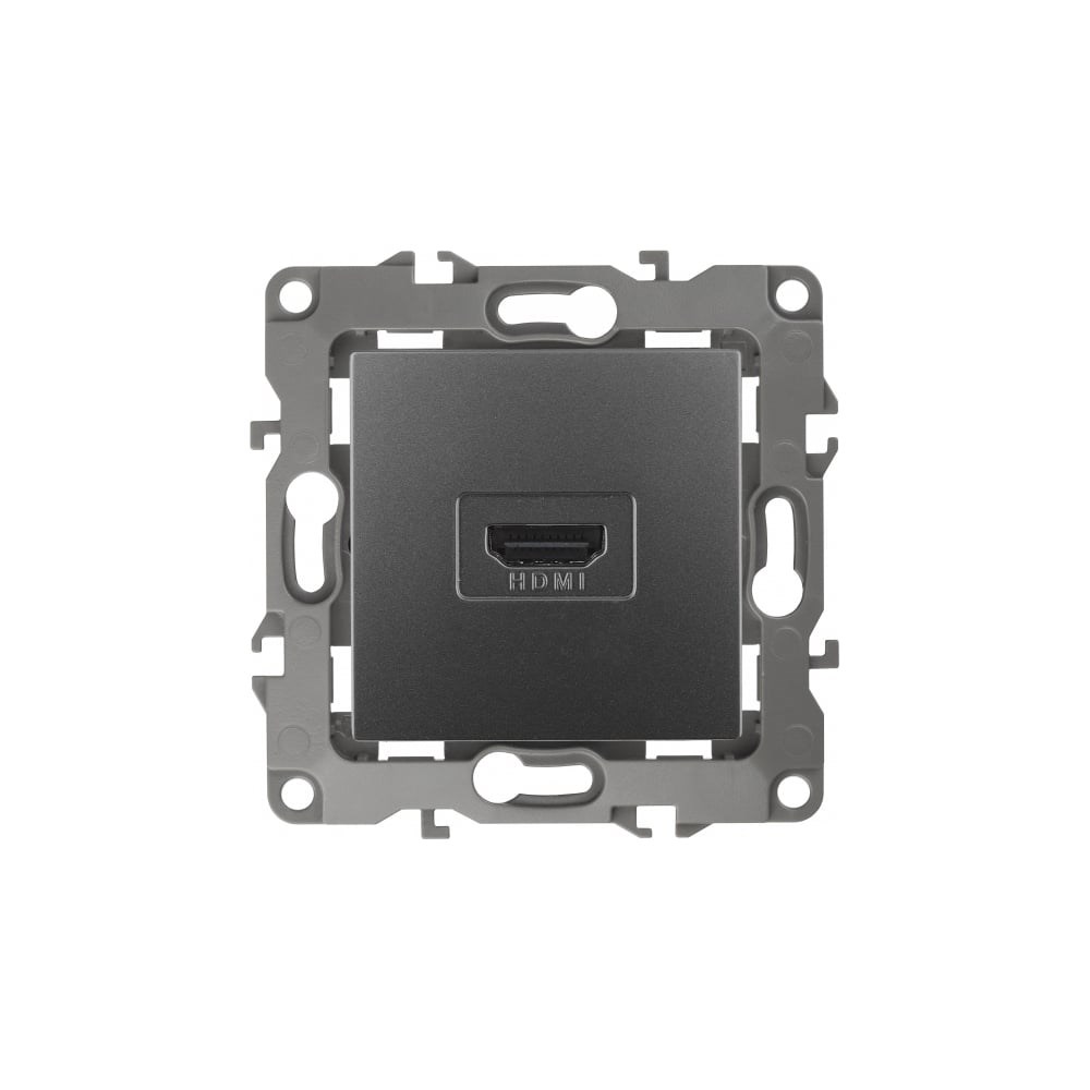Розетка ЭРА 12-3114-12 HDMI, IP20, 12, графит Б0027487 сделана из поликарбоната. Монтаж в подрозетник производится и на лапки, и на винты. Рамки приобретаются отдельно.