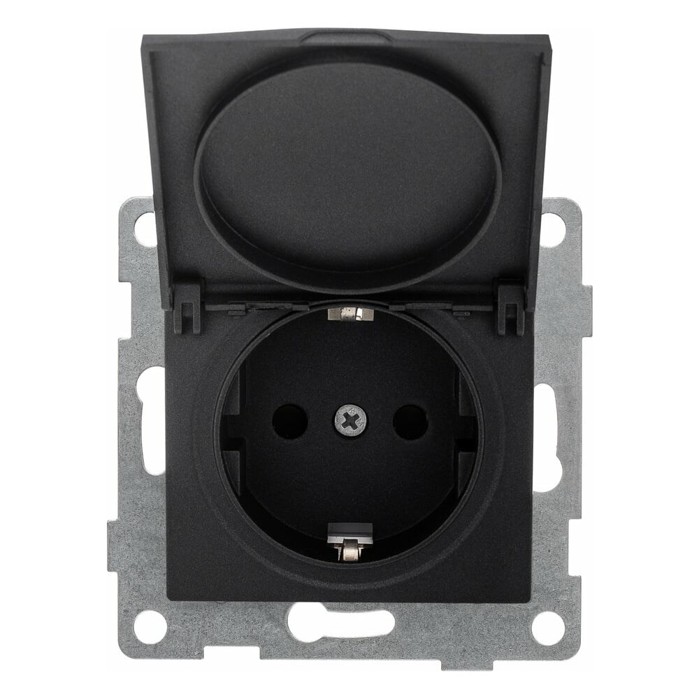 Розетка GUSI ELECTRIC Bravo 1-ой с/з с з/ш и крышкой, СУ, 16А, 250В, графит С10Р91-010