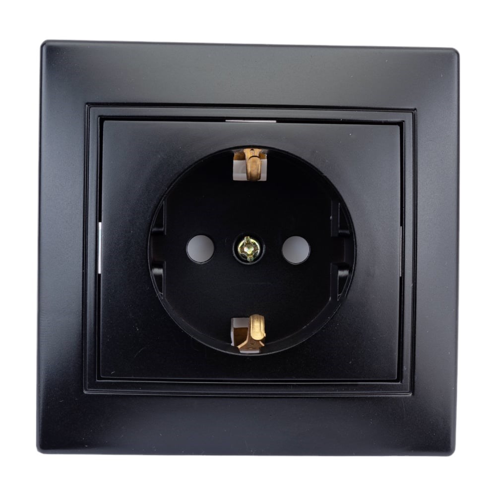 Розетка Intro Plano с заземлением 2P+E Schuko со шторками, 16А-250В, IP20, СУ, антрацит, Б0053928