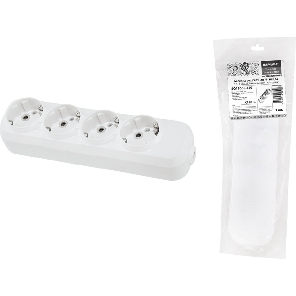 Розеточная колодка TDM ELECTRIC 4 гнезда 2П+3 16А 250В белая серии Народная SQ1806-0420