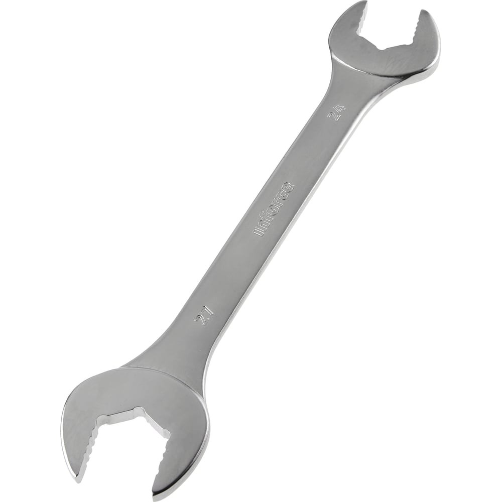 Рожковый ключ 24x27мм Inforce 06-05-66 выполнен из прочной хромованадиевой стали. Сплав выдерживает значительное давление и воздействие коррозии. Инструмент имеет достаточные размеры для создания мощного рычага воздействия на крепеж и легкого демонтажа даже тугих гаек.