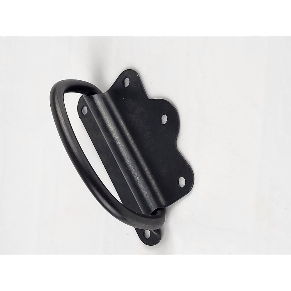 Ручка для ящика изготовлена из вороненой стали толщиной 1 мм и прутковой стали диаметром 6 мм. Подходит для переноса изделий средней тяжести, крепится на ровные поверхности. Предназначается для ящиков, контейнеров, тар, ульев, крышек, люков, напольных дверей, переносного оборудования, выдвижных и распашных мебельных конструкций. Откидная часть ручки имеет свободный ход 90 градусов.
