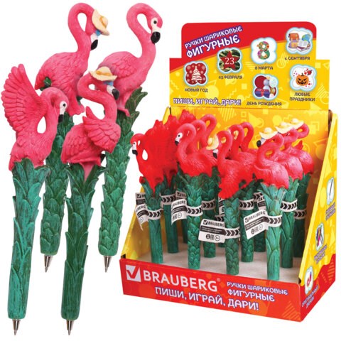 Ручка фигурная "ФЛАМИНГО", СИНЯЯ, 4 дизайна ассорти, линия письма 0,5 мм, дисплей, BRAUBERG, 142760