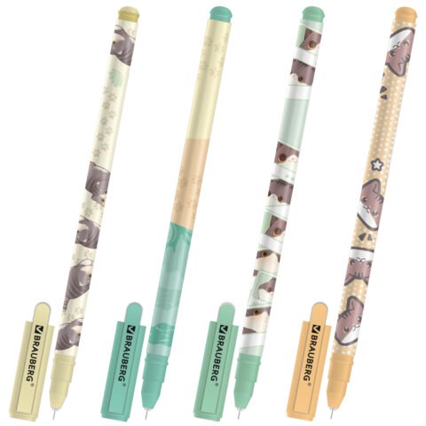 Ручка гелевая, кросс-серия "МИЛЫЕ КОТЫ", BRAUBERG, СИНЯЯ, корпус ассорти, игольчатый наконечник 0,5 мм, линия письма 0,3 мм, 144480
