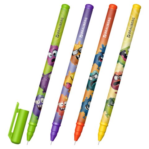 Ручка гелевая, кросс-серия "МОНСТРИКИ", BRAUBERG, СИНЯЯ, корпус ассорти, игольчатый наконечник 0,5 мм, линия письма 0,3 мм,144483