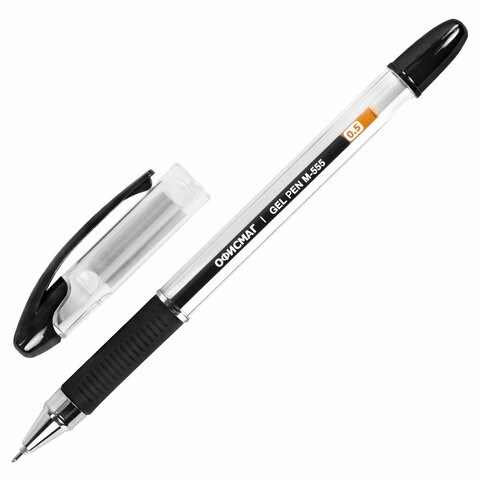 Ручка гелевая с грипом ОФИСМАГ "M-555", ЧЕРНАЯ, игольчатый наконечник 0,5 мм, линия письма 0,35 мм, 144213