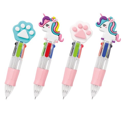 Ручка мини многоцветная шариковая автоматическая FUNSTER "MIX" предназначена специально для маленьких учеников. Укороченный размер и прорезиненная зона захвата обеспечивает комфортное положение в руке при письме, минимизируя нагрузку и позволяя писать особенно долго. Ручка имеет прозрачный корпус и дополнена очаровательными топперами ассорти: обаятельные единороги и милые лапки голубого и белого цвета. Ручка оснащена четырьмя стержнями универсальных цветов: синий, красный, зеленый и черный - идеально для ведения записей и выделения важных заметок. Стержни имеют стандартный наконечник диаметром 0,7 мм, толщина линии письма - 0,35 мм.