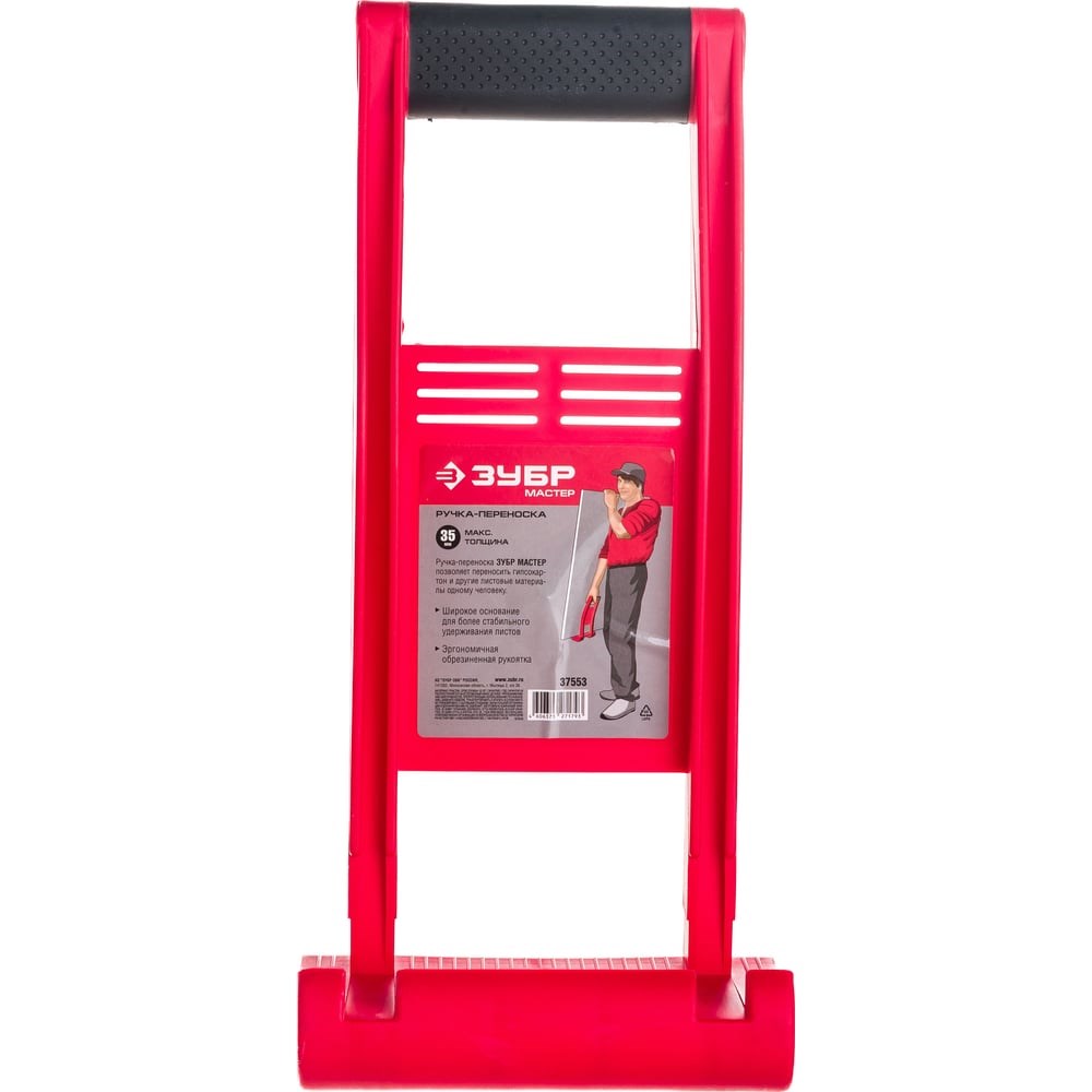 Ручка-переноска с прорезиненной рукояткой для панелей до 35 мм ЗУБР МАСТЕР 37553 выполнена из прочного пластика. Резиновая накладка не дает руке соскальзывать во время эксплуатации. Подходит для перемещения гипсокартона одним человеком.