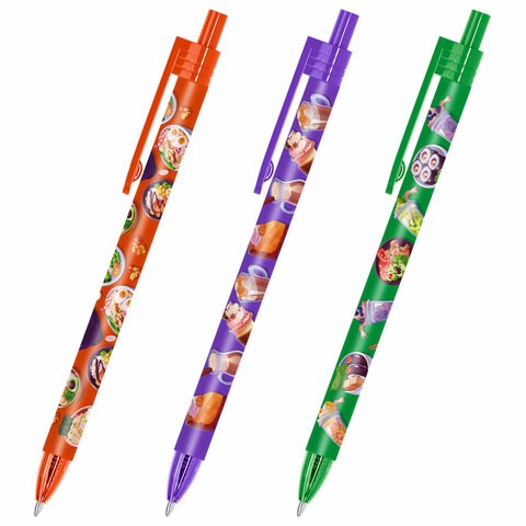 Ручка шариковая автоматическая с принтом FUNSTER (ФАНСТЕР) "TASTY FOOD", корпус soft-touch, СИНЯЯ, узел 0,7 мм, линия письма 0,35 мм, 144403