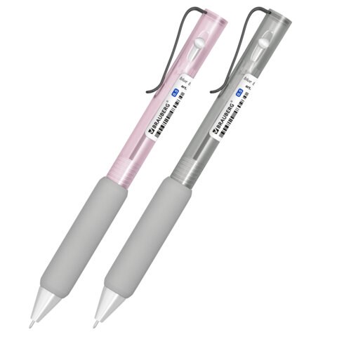 Тонированный корпус ручки представлен в двух цветах: розовый и серый. Необычный и современный дизайн достигается за счет металлического клипа и увеличенного в размерах мягкого грипа. Шариковый игольчатый узел диаметром 0,5 мм позволяет создать линию письма 0,35 мм.