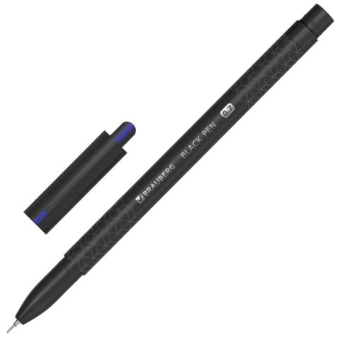Ручка шариковая масляная BRAUBERG "BLACK PEN", СИНЯЯ, игольчатый узел 0,7 мм, линия письма 0,35 мм, 144325