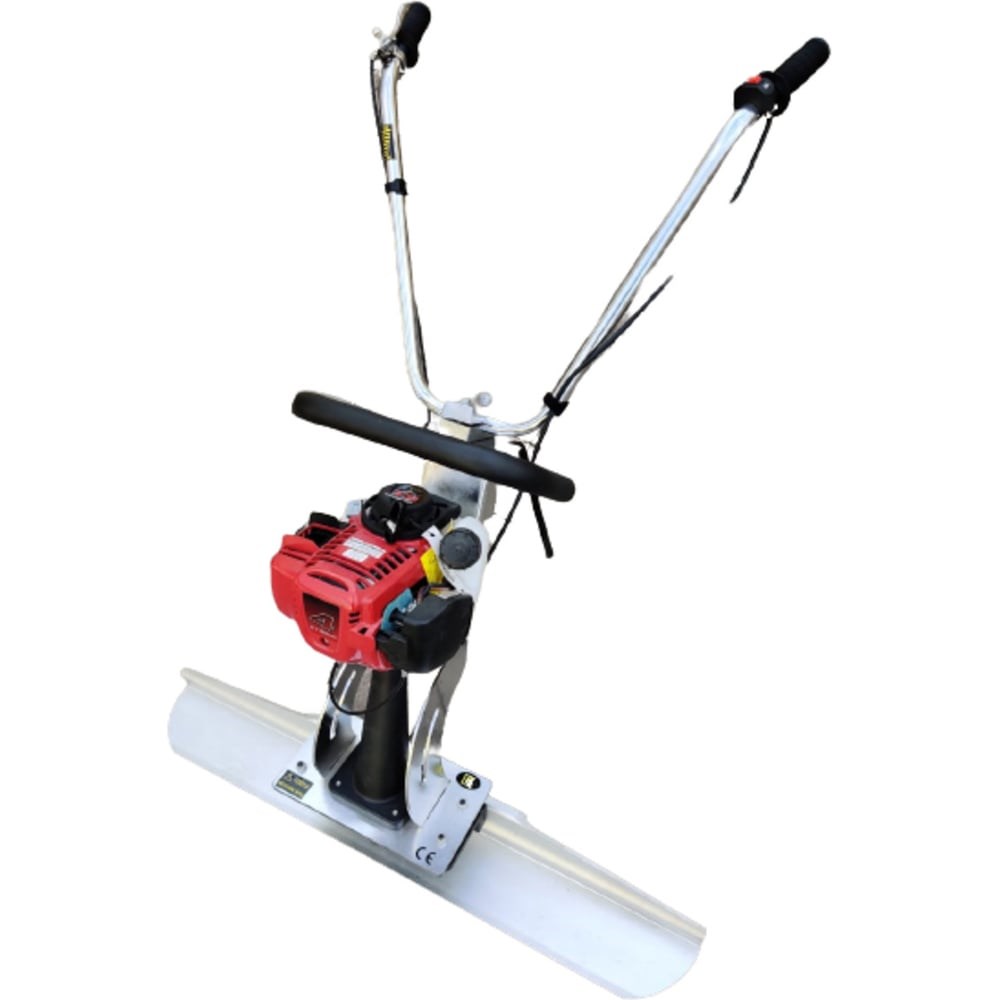 Виброрейка ручная предназначена для уплотнения и выравнивания бетонных смесей при бетонировании дорог, полов, площадок в промышленном и гражданском строительстве. Виброрейки позволяют делать стяжку на бетонных смесях малой влажности (до 20 процентов воды). Уложить такой раствор традиционным способом достаточно трудно, смесь малоподвижна и плохо трамбуется. Под воздействием вибрации рейка сокращает до минимума пористость бетона и позволяет максимально равномерно распределить бетонную смесь. Виброрейка обеспечивает одинаково отличное вибрирование по всей длине лезвия. Главное: можно уложить в 4 раза больше бетона и более аккуратно. Плавающая виброрейка работает по направляющим или без них. Движение рейки обеспечивается за счёт того, что оператор тащит её за рукоятки на себя, а специальный профиль позволяет ей плыть по раствору даже без направляющих рельс-форм. Состоит из бензинового двигателя, топливного бака, алюминиевого профиля разной длины, груза-эксцентрика, расположенного в центре профиля и рукоятки управления. Бензиновый двигатель через приводной вал вращает груз-эксцентрик, в результате чего создаются вибрации.