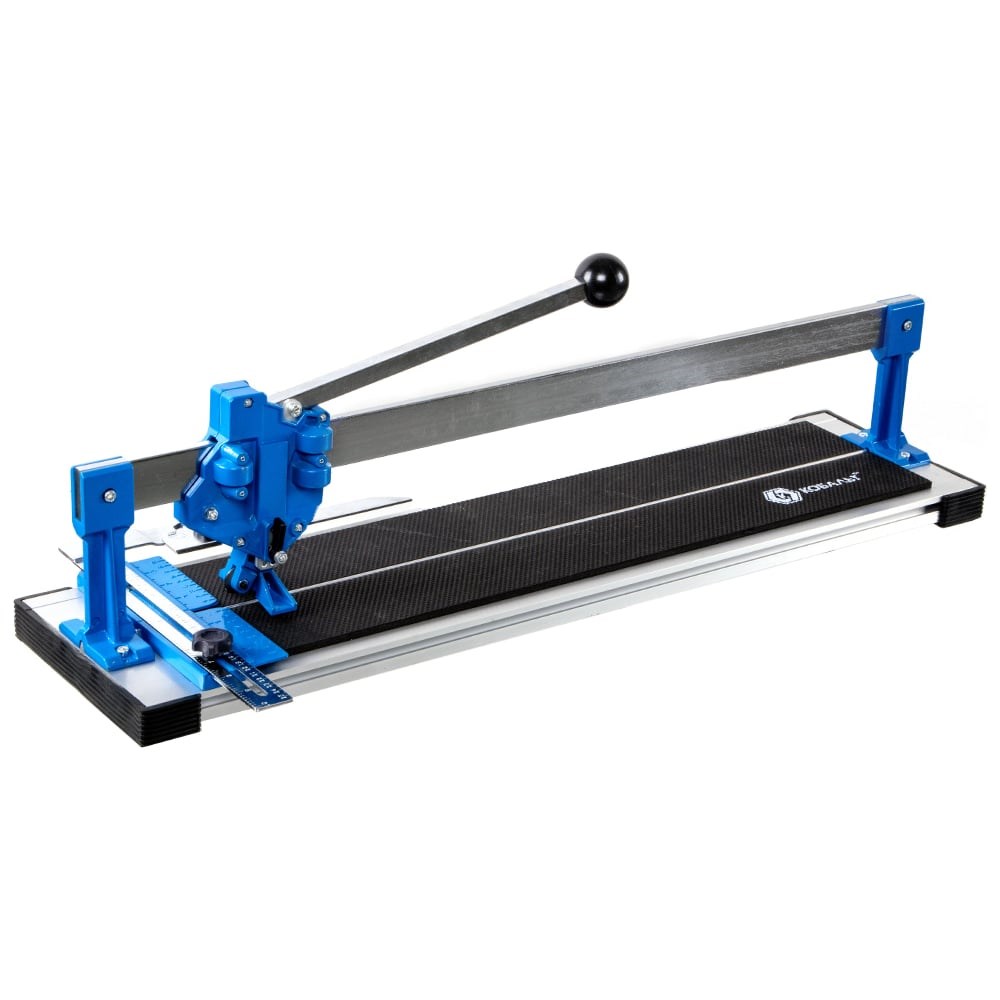 Литая станина из алюминиевого сплава с обрезиненной рабочей поверхностью. Монорельс изготовлен из хромированной стали с антикоррозийным покрытием. Каретка на 9-и подшипниках обеспечивает плавное перемещение. Линейка-угольник для резки плитки под углом 60°, регулировки размера и дополнительной фиксации отрезаемой заготовки. Максимальный размер плитки для диагонального реза 840х840 мм.