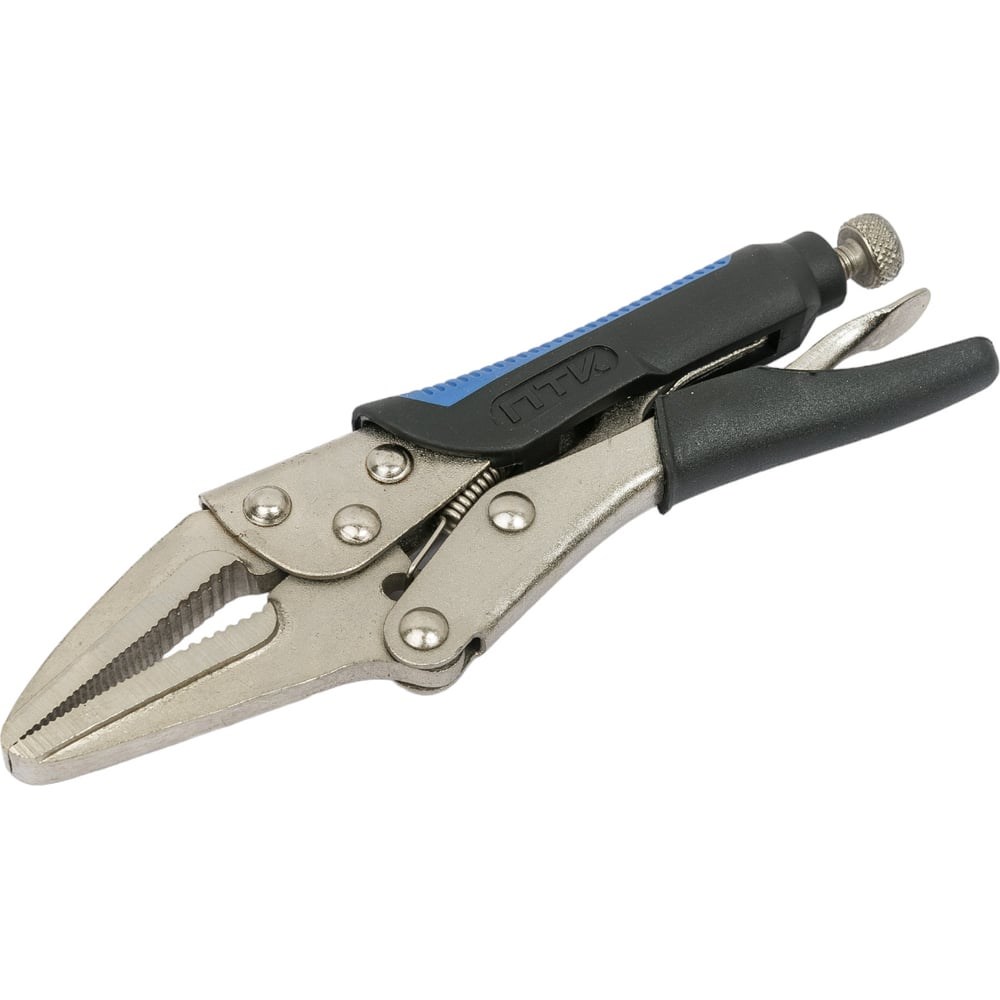 Ручной зажим с фиксатором ПТК РЗФ-6,5 Тип J 00000034431оснащен подвижными губками и винтом, который расположен на рукоятке и обеспечивает надежную фиксацию. Максимальный размер закрепляемой детали 32 мм. Зажим изготовлен из стали и имеет прочную конструкцию с высокой степенью твердости. Это значительно увеличивает срок эксплуатации изделия. Данная модель имеет изолированные ручки из термопластичной резины, которые обеспечивают надежный захват инструмента во время работы.