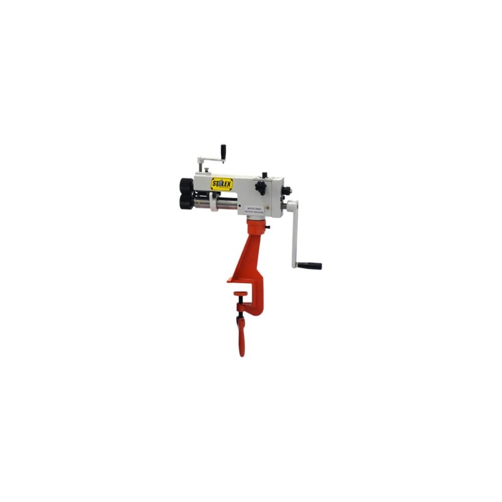 Зиговочный ручной станок Stalex RM-08 373205 предназначен для обработки листового металла толщиной не более 0.8 мм. В комплект поставки входят шесть наборов съемных насадок для выполнения различных операций. Полностью механическая конструкция машины не требует какого-либо специального обслуживания и отличается долгим сроком службы. Рабочие рычаги имеют удобные наконечники для надежного захвата рукой.