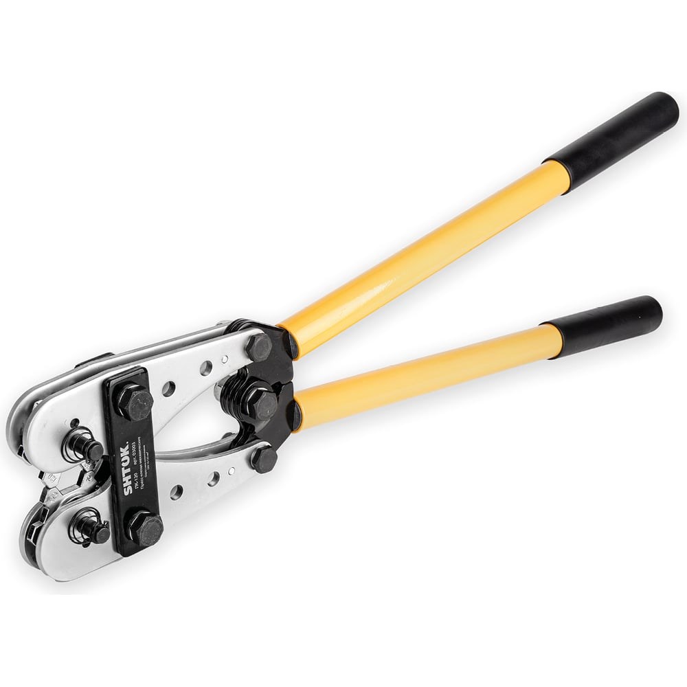 Ручные пресс-клещи SHTOK ПК-120 03003 легко перенастраивается под любые сечения наконечники. Имеет небольшие размеры и малый вес для комфортной и удобной работы. Предназначен для выездной и мобильной работы. Конструкция револьверного крепления матриц без люфта, что обеспечивает качественную опрессовку; Опрессовка в одно движение; Быстрая перенастройка на нужный размер;