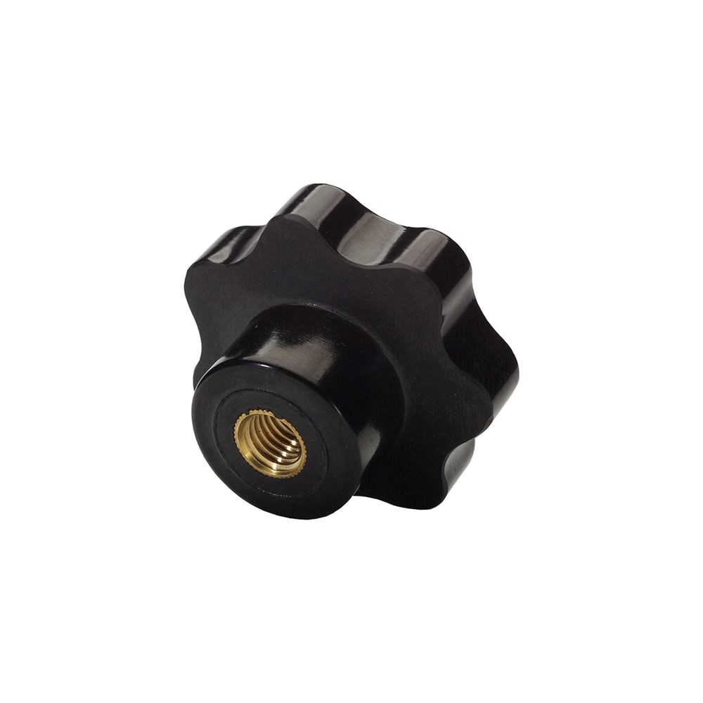 Звездообразная рукоятка с внутренней резьбой применяется для фиксации деталей, станочных приспособлений и частей оборудования, также могут использоваться в качестве дверных ручек или для удобства обслуживания различных съемных частей. Эргономичная бакелитовая головка обеспечивает прочный захват, имеет высокую ударопрочность и длительный срок службы. Бакелит устойчив к внешней среде и механическим воздействиям, не вступает в реакцию с химическими веществами и полностью безвреден, обладает высокими механической и термостойкостью.