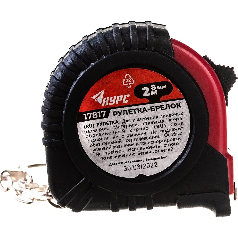 Рулетка-брелок КУРС 2м х 8 мм 17817 практична и универсальна, благодаря небольшим размерам ее всегда можно носить с собой. Имеет прочную стальную ленту. Корпус обрезинен - для защиты при падении.