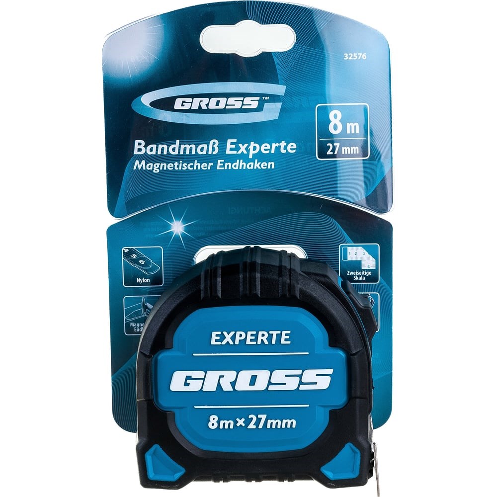 Рулетка Gross «Experte» 32576 с полотном 8 м х 27 мм, в двухкомпонентном корпусе, с двухсторонней разметкой и нейлоновым покрытием ленты, пригодится во время проведения ремонтных и строительных работ. С ее помощью можно измерять заготовки, материалы, конструкции и т.д. Благодаря магнитному зацепу рулетка оптимальна для работы с металлическими поверхностями, а широкое упругое полотно удобно для выполнения измерений в труднодоступных местах.