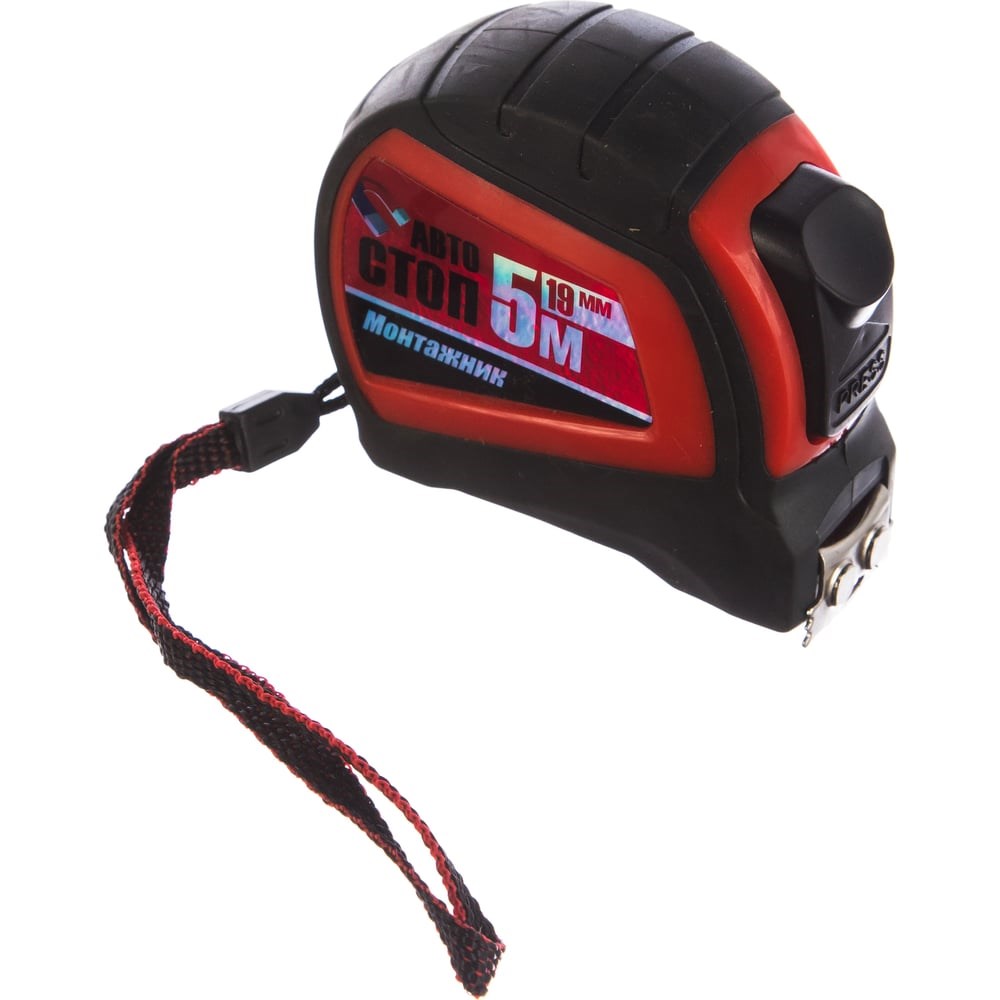 Рулетка с автостопом и магнитом Монтажник 5 м х 19 мм 602519 имеет обрезиненный корпус, который удобно держать в руках. Усиленная пружина для сматывания мерной ленты выполнена из легированной стали и имеет длительный срок службы.