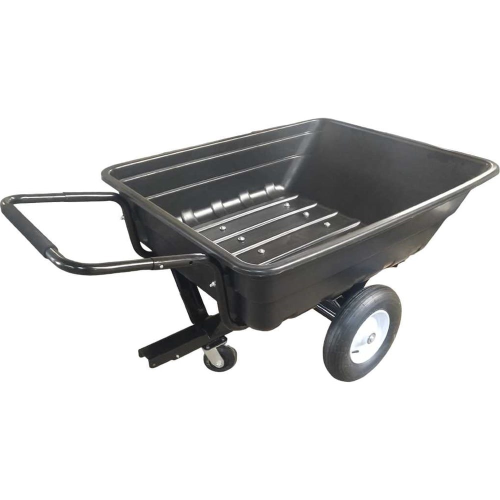 Тачка садовая строительная – это превосходный помощник для транспортировки строительных или хозяйственных материалов, скошенной газонной травы, листьев, удобрений, песка, мульчи, древесины, и т.д. Кузов прицепа легко опрокинуть большим рычагом. Тачка перемещается в ручную либо в качестве прицепа с любыми моделями садовых тракторов или райдеров, где установлен подходящий фаркоп прицепа.
