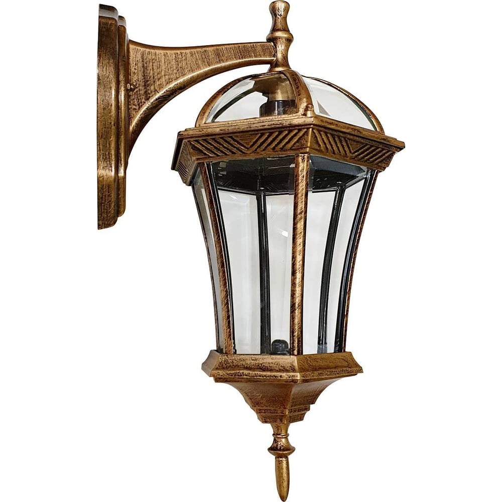 Садово-парковый светильник De Fran Е27 60Вт IP44 черненное золото EL-640DN серии Дворянский, выполненный в классическом стиле, предназначен для освещения фасадов зданий, уличных кафе, придомовых территорий, террас, а также может быть использован для интерьерного освещения. Корпус светильника, изготовленный из литьевого сплава алюминия, долговечен и устойчив к воздействию неблагоприятных факторов окружающей среды. Большое количество стекол в конструкции светильника уменьшает потери света на металлических деталях и увеличивает зону освещения.