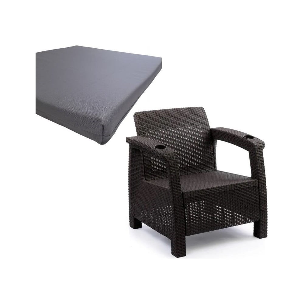 Кресло произведено из высококачественного полипропилена, имитирующего плетение из ротанга. Кресло имеет одно посадочное место, допустимая нагрузка на одно посадочное место - 106 кг. На подлокотниках дивана расположены отверстия для напитков. Кресло может стать идеальным решением по оформлению зоны отдыха в доме, на садовом участке, в офисном помещении или в кафе. Благодаря цветовым решениям, кресло подойдет под любой интерьер. Кресло упаковывается в индивидуальную упаковку, инструкция по сборке прилагается. Зону отдыха также можно дополнить журнальным столиком и диванами серии «Ротанг». Подушки черного цвета для сидения в комплекте выполнены из прочного и водоотталкивающего материала Оксфорд 600. Мебель предназначена для использования внутри и снаружи помещения.
