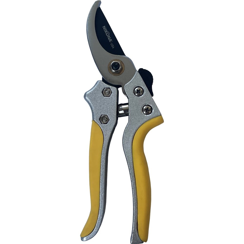 Садовый секатор NIKONA 67-454 современный, плоскостной, оснащен мощными изогнутыми лезвиями, которые обеспечивает высокую мощность обрезки живых и растущих ветвей толщиной до 26 мм. Верхнее лезвие, расположенное под углом режущей головки, изготовлено из высококачественной стали SK5, имеет прецизионную сверхточную заточку и покрытие от налипания. Благодаря хорошей эргономике и прорезиненным рукояткам секатор удобно держать в руках. Алюминиевая конструкция обладает хорошей прочностью и износостойкостью. В секаторах предусмотрен желобок для стекания сока растений и резак для проволоки. Фиксатор, переключаемый одной рукой, дает возможность с легкостью заблокировать секатор для безопасного хранения.