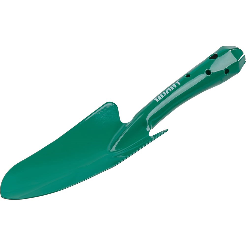 Садовый совок ВОЛАТ 59010-02 изготовлен из среднеуглеродистой стали методом штамповки. Благодаря цельнометаллической конструкции совок выдерживает работу с плотными почвами.