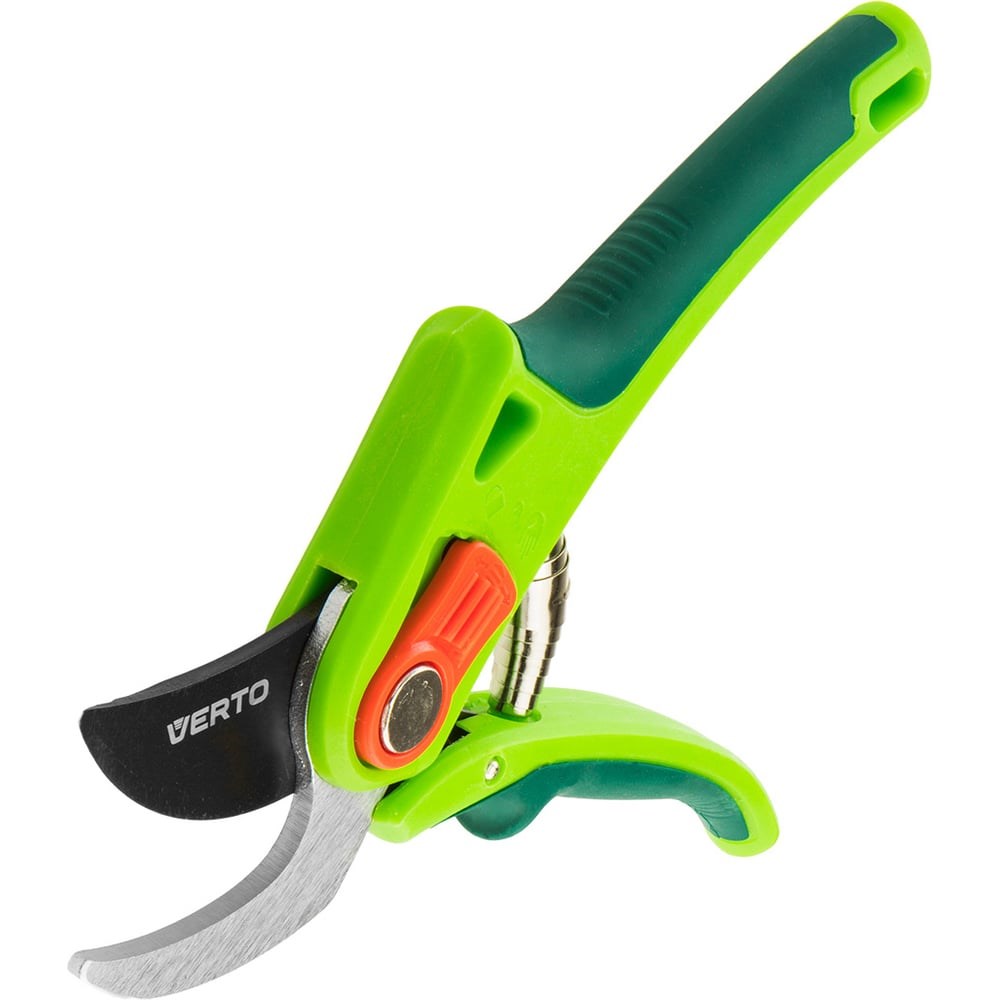 Садовый универсальный секатор VERTO регулировка рабочего диапазона 15G202 имеет небольшие размеры, что значительно упрощает использование инструмента даже маленькими ладонями. Защиту от коррозии и налипания мусора обеспечивает тефлоновое покрытие лезвия. Секатор снабжен функцией блокировки лезвия для безопасности использования.