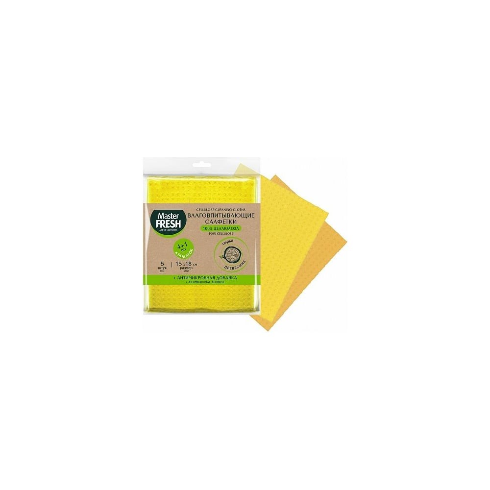Предназначена для уборки в доме, на кухне, в ванной. Универсальное применение. Материал: целлюлоза; Влаговпитывающие салфетки Master Fresh Eco Line изготовлены из 100% натурального сырья-целлюлоза и экологически безопасны. Уникальная рецептура с антимикробной добавкой продлевает срок службы салфеток, обеспечивает их чистоту и гигиеничность во влажной среде. Размер: 15 x 18 см; Количество: 5 шт.
