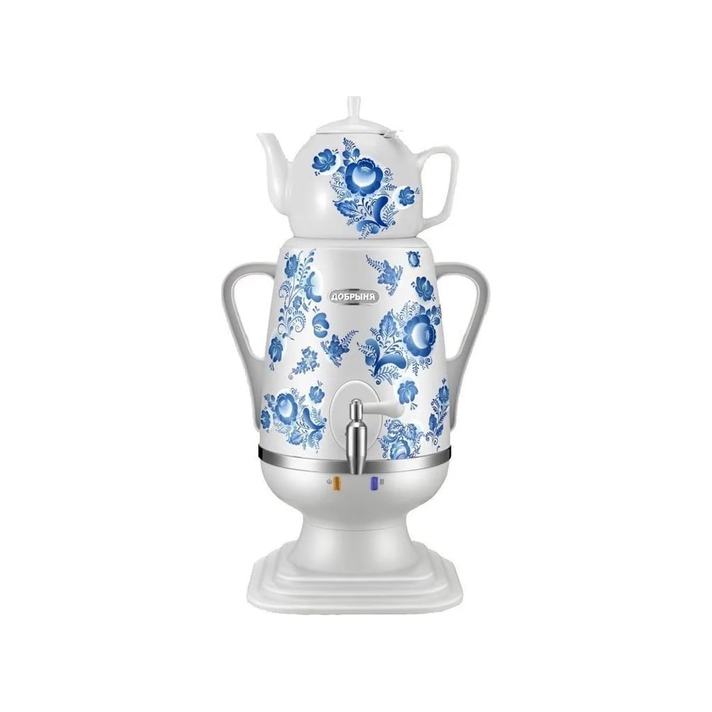 Самовар Добрыня DO- 415 предназначен для кипячения воды. Имеет большой объем, благодаря чему подойдет для семьи или большой компании. Функция термопота не даст быстро остыть воде, что увеличит время чаепития. Дизайн прибора впишется в обстановку дачного или загородного дома. Дополнительные характеристики: Мощность в режиме подогрева 100 Вт. Напряжение сети 220 В Нагреватель - дисковой   Световая индикация работы - есть, Автоматическое отключение - есть, Защита от перегрева - есть.