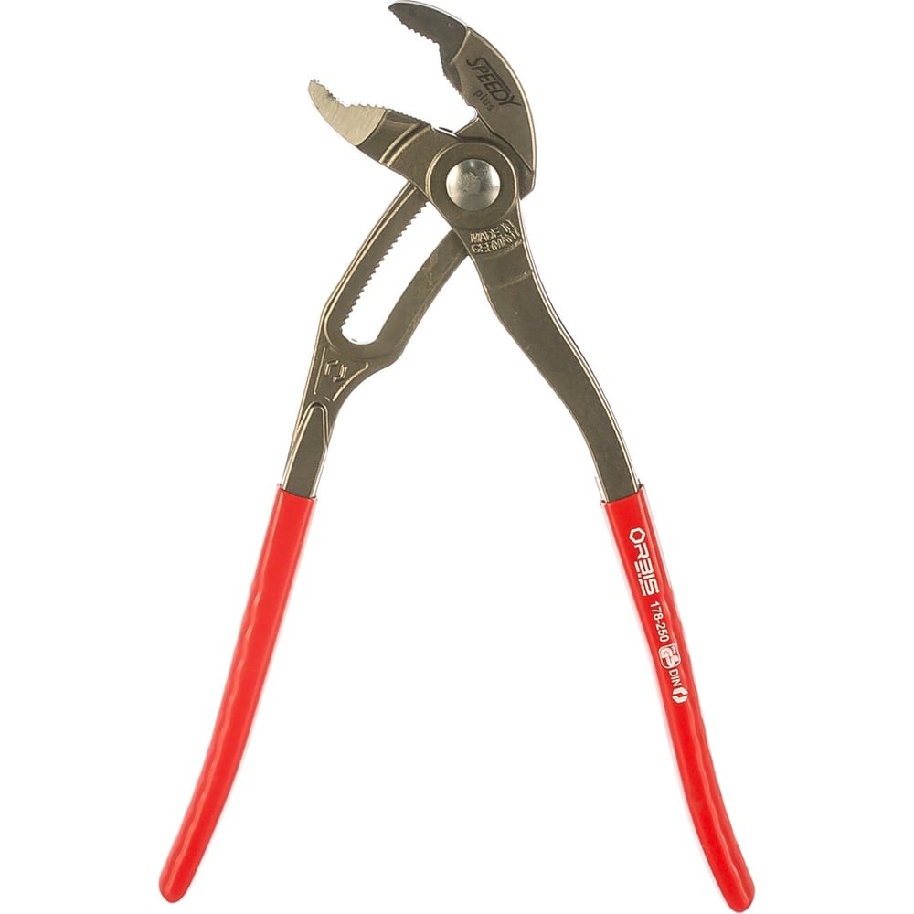 Сантехнические клещи L=250 мм OrbisWill SpeedyPlus 178-250/2022 оснащаются нескользящими чехлами на рукоятках. Для успешной работы имеются разнонаправленные зубья - они зажимают деталь более прочно. Перенос соединения увеличивает захват на 30% по сравнению с аналогичными моделями.