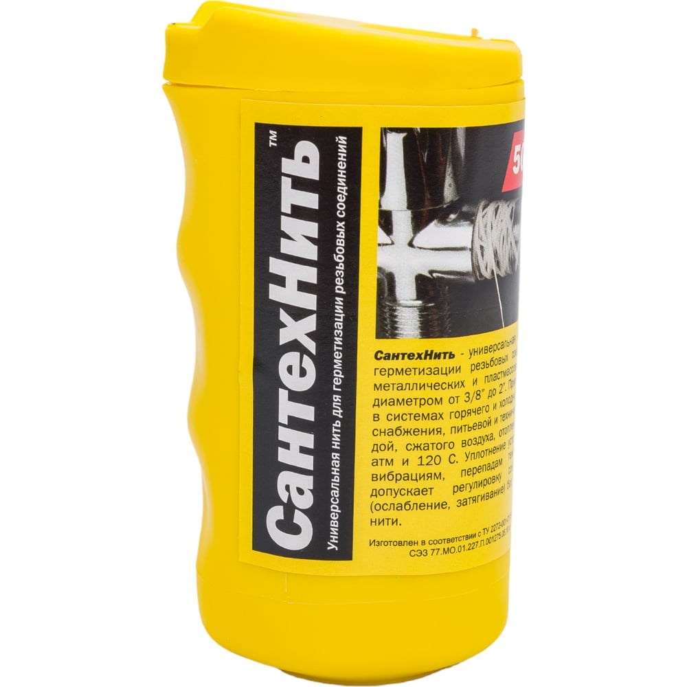 Универсальная нить «СантехНить» (в намотке 50 метров) предназначена для герметизации резьбовых соединений различных труб и фитингов, в том числе в трубопроводах отопления и водоснабжения, в системах подачи сжатого воздуха. Поможет уплотнить соединение практически между любыми материалами. После сборки обеспечивает моментальную герметизацию. В течение 72 часов после установки позволяет регулировать места соединений без потери герметичности. Намотав нить на резьбу, вы обеспечите герметичную компоновку труб без риска их повредить. Может использоваться на элементах из любого пластика или металла. Уплотнительная нить герметизирует моментально. Нить — уплотняющий герметик — нетоксичный материал, для работы с которым не требуется краска, растворители, пропитки.Синтетическая уплотнительная нить не впитывает влагу и не разбухает, как синтетический материал она не подвержена разложению. Неприхотлива в подготовке к работе. Нить используется на грязной, мокрой и грубо нарезанной резьбе. Устойчивость и эстетичность. Такой уплотнитель соединений как полимерная нить устойчив к вибрациям, механическим повреждениям, ударам и перепадам температур. Преимущества:возможна регулировка мест соединения;подходит для всех типов резьбы;устойчива к температурным перепадам. Не разбухает и не ссыхается. Не затрудняет последующую разборку резьбовых соединений.