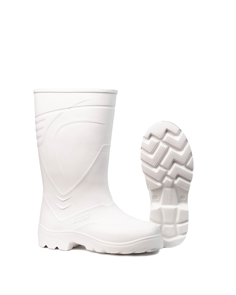 Сапоги мужские "Север" выполнены из современного материала ЭВА белые с защитным композитным подноском и стелькой. Обувь изготовлена методом однокомпонентного литья под давлением. Предназначена для применения в условиях агрессивных сред и пониженных температур, защиты ног от воды, Обладают легкостью (вес 1 пары 700 грамм). Предназначена для защиты от механических воздействий в носочной части до 200Дж, устойчива к проколу до 530Н. Обеспечивает противоскользящие свойства. Предназначена от общих производственных загрязнений, от кислот с концентрацией от 20 до 80%, от щелочей концентрацией от 20 до 50%, нефте-, масло-, жиростойкие.