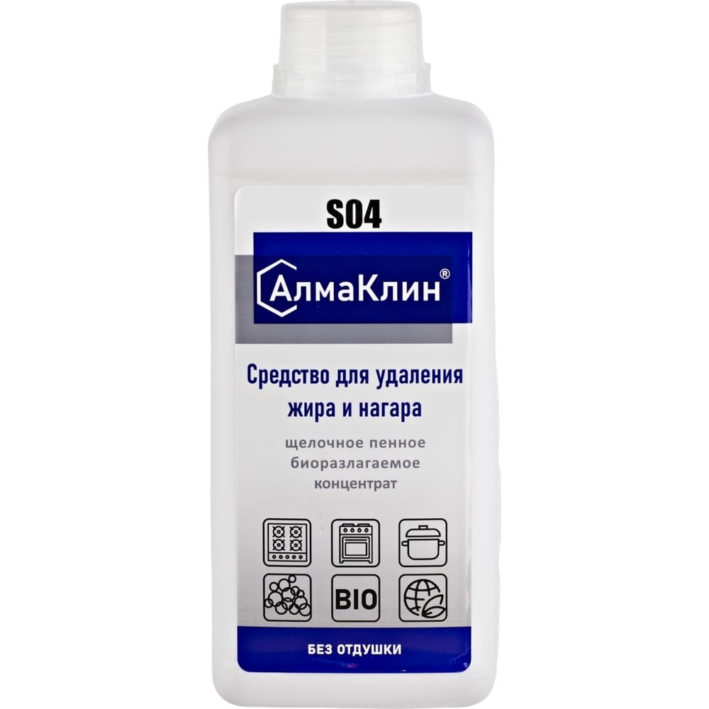 Щелочное моющее средство для мойки грилей и духовок ООО "БАЗОВАЯ ДЕЗИНФЕКЦИЯ" АлмаКлин S04, концентрат, 1 л, крышка S04-1Л - высокопенное моющее средство для мойки всех видов щелочеустойчивых поверхностей в пищевой промышленности и общественном питании. Растворяет остатки дегтя, смолы, копоти и белковые пятна. Может применяться для обезжиривания полов, стен и рабочих поверхностей. Способ применения: Обезжиривание поверхностей: в зависимости от степени загрязнения приготовить рабочий раствор 0,5-5%-ой концентрации (50-500 г средства на 10 л горячей воды); нанести раствор на поверхность при помощи губки или пеногенератора; выдержать 10-30 минут; смыть большим количеством воды. Удаление нагаров: в зависимости от степени загрязнения приготовить рабочий раствор 10%-100%-ой концентрации (от 1 кг средства на 10 л горячей воды); нанести раствор на поверхность при помощи губки или пеногенератора и выдержать 10-30 минут; при необходимости применить механическое воздействие; смыть большим количеством воды. Меры предосторожности: при работе со средством использовать резиновые перчатки. В случае попадания в глаза промыть большим количеством воды. Не смешивать препарат с кислотными и другими моющими средствами.