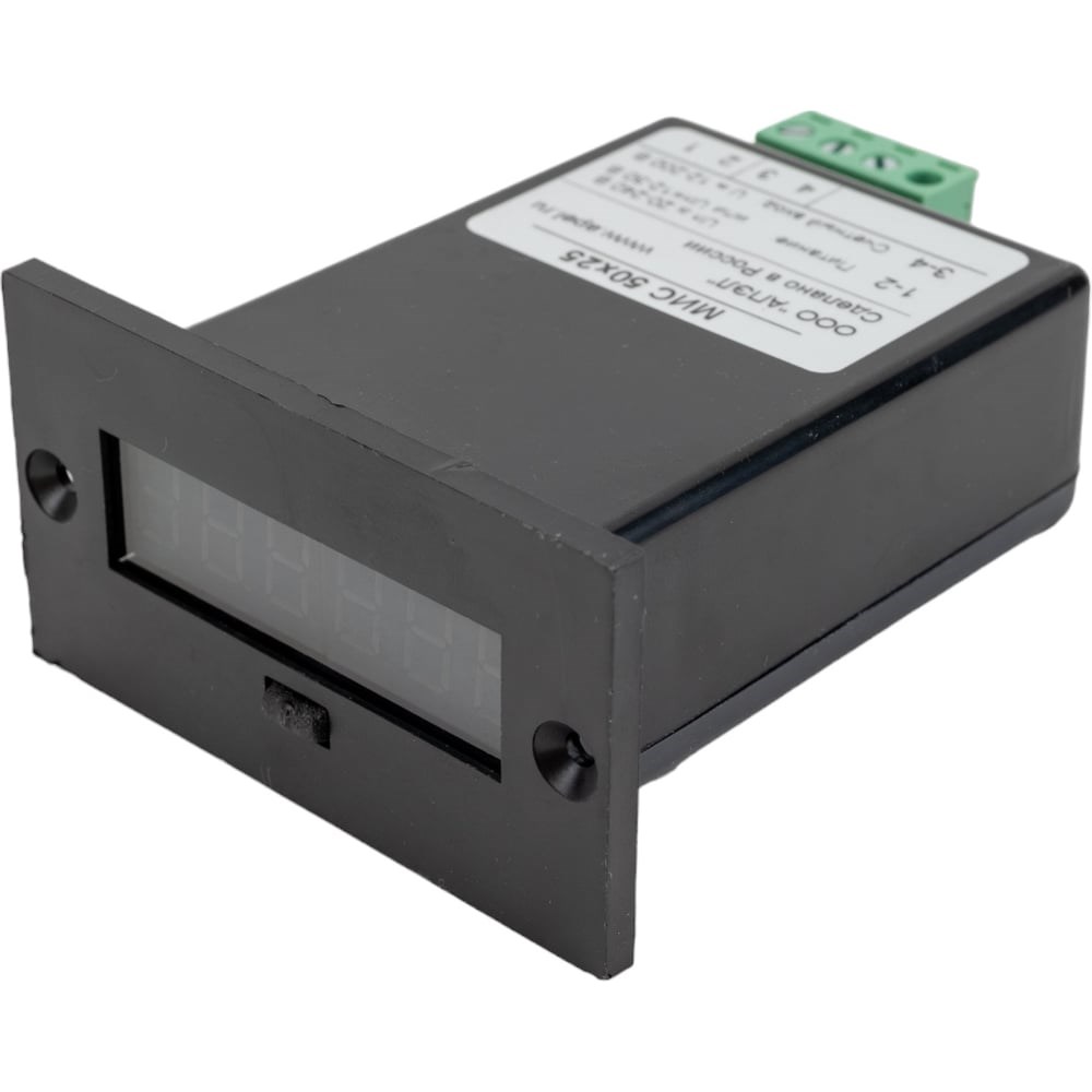 Счётчик модульный интеллектуальный МИС предназначен для учёта продукции путём подсчёта импульсов напряжения на счётном входе. Работа прибора. Счётчик представляет собой электронное устройство на основе микроконтроллера. Принцип работы счётчика заключается в том, что он фиксирует количество входных импульсов напряжения, запоминает их в четырёх внутренних счётчиках - локальном, постоянном (фискальном), сменном и отгрузочном и отображает на дисплее один из них. Щитовое исполнение корпуса счётчика определяет компоновку его органов управления, индикации и разъёмов подключения. На передней панели прибора расположен шестиразрядный светодиодный дисплей. Под ним расположена кнопка управления счётчиком. На тыльной стороне прибора смонтированы винтовые контактные колодки для подключения питания, источника счётных импульсов, входной и выходной линий последовательного интерфейса. Счётчик передаёт свои данные по последовательному интерфейсу и отображает их на дисплее. Переключение между режимами отображения и сброс внутреннего локального счётчика осуществляется кнопкой управления. Счётчик запитывается от источника постоянного напряжения от 12 до 30 В или переменного напряжения от 20 до 200 В. Полярность подключения источника постоянного напряжения значения не имеет. Постоянное или переменное напряжение счётных импульсов может быть от 12 до 200 В.