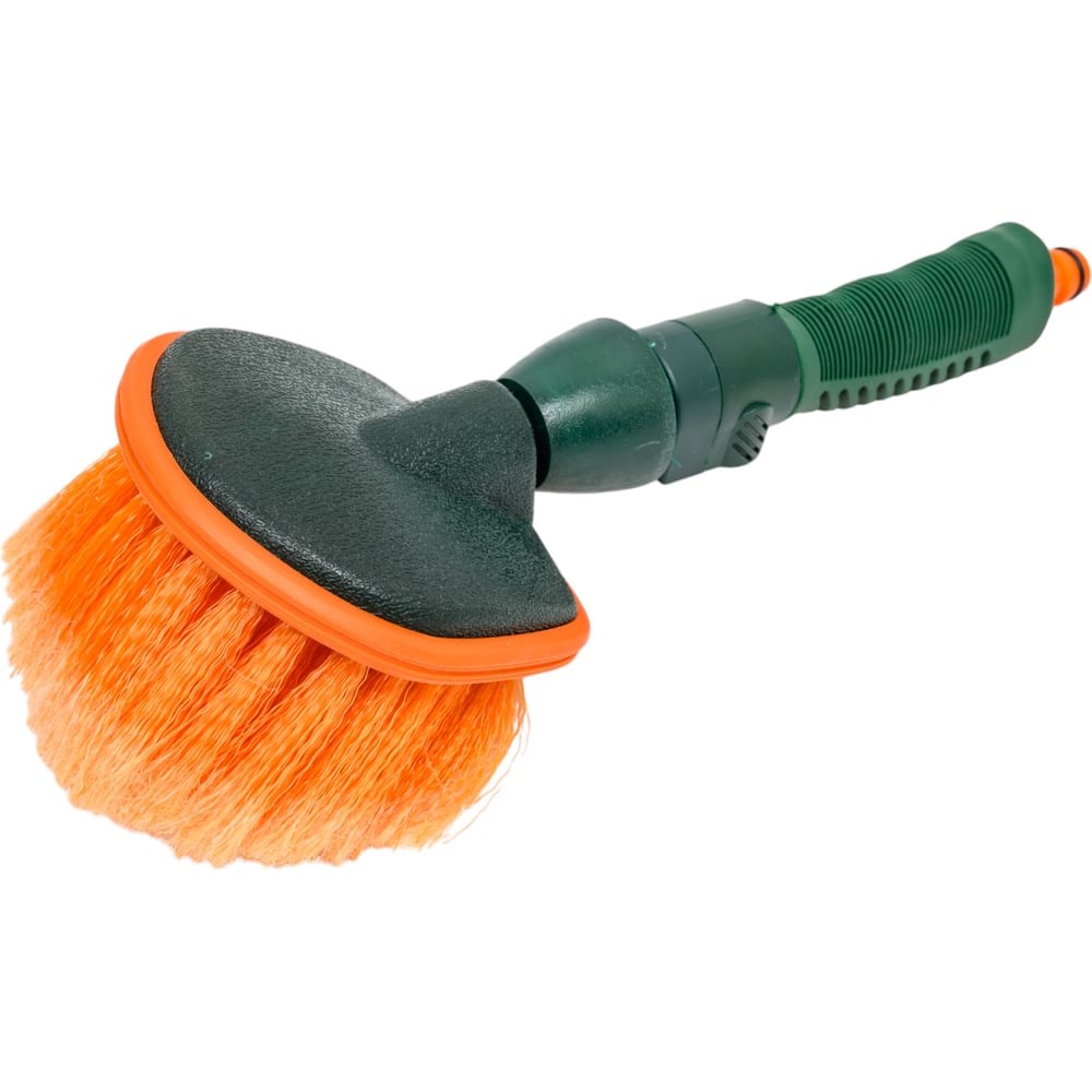Данная щетка для машины с ярким дизайном имеет специальную насадку для подсоединения шланга к водопроводу, что позволит произвести более качественную чистку вашего транспортного средства и при этом точно не поцарапает лакокрасочное покрытие машины. Длина щетки 30 см.