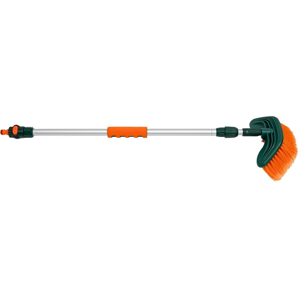 Проточная щетка для мытья оснащена телескопической ручкой. Расщепленная щетина обеспечивает тщательную и качественную мойку. Для удобства использования ручка оснащена двумя поролоновыми противоскользящими накладками и запорным краном. Длина 88-140 см.